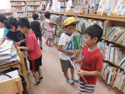 図書委員会が昼休みに本探しゲームをしてくれました。うまく本が見つかったら、しおりがもらえます。みんな本棚をあちこち探して本を見つけ、気に入ったしおりをもらうことができました。