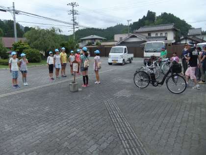 おうちの人に見送られながら、6年生が黒田に元気に出発しました。全員参加でよかったですね。
