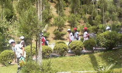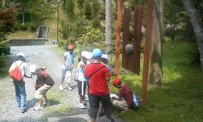 8月3日 ゼミナールハウスへ着き,入所式終了後オリエンテーリングを開始しました。広い敷地内を北へ南へ西へ東へとグループで協力してまわっています。今日のテーマは「自然」です。みんなで自然を満喫しましよう!