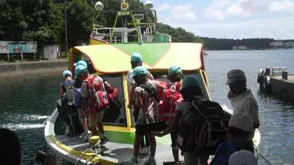 4年みさきの家ニュース3 近鉄賢島駅から船に乗り換え,みさきの家に出航!