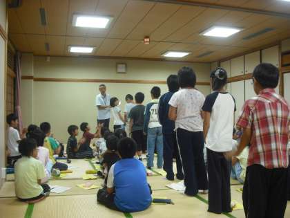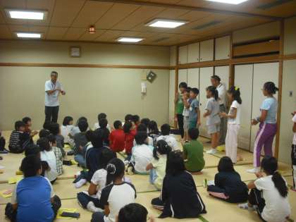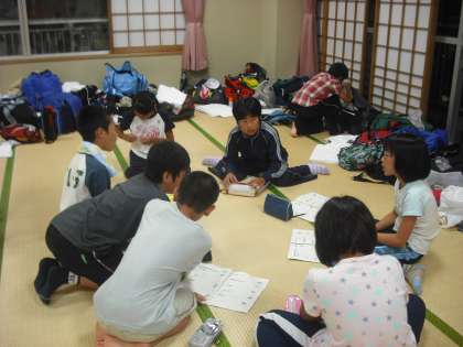8月3日 午後9時,今日の反省会を大広までしました。各班で話し合う前に朝の「ゼミオリエンテーリング」の表彰式がありました。どの班も協力していて接戦でした。各賞にみんなから拍手がありました。その後,今日の反省会を各班でしました。明日も頑張るぞ〜!