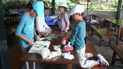 昼ごはんは、自分たちで火をたいて作ります。みんなで協力して、おいしい「すき焼き風煮」ができればいいですね。