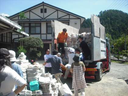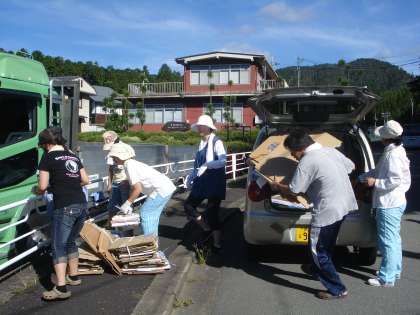 8月29日 今日は,日曜日ですがPTA廃品回収と植木剪定が実施されました。保護者と教職員が山国地域と黒田地域の2箇所に別れて取り組みました。また,校内の植木剪定も同時に行いました。廃品回収には,5・6年の子ども達も頑張ってて手伝っていました。例年この8月の下旬に取り組んでいますが,今年度は特に暑さ対策に充分注意しました。暑い中,本当にご苦労さまでした。
