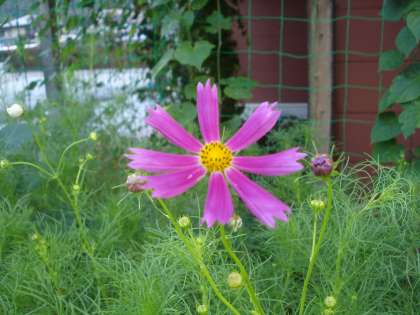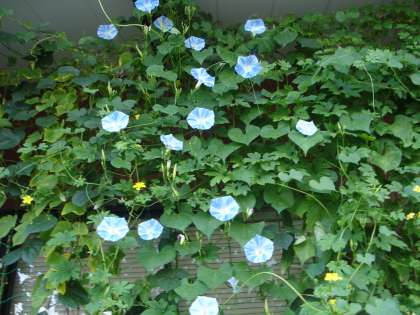 9月13日 一斉に咲き出したコスモスの上にはヘブンリーブルーが咲き出しました。