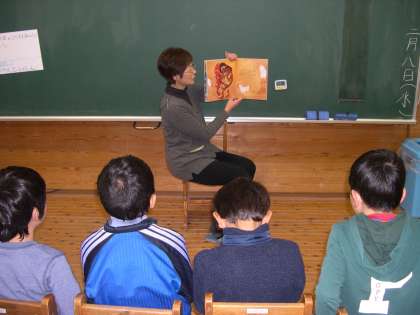 3年生は岡本さんに「そりあそび」を読んでいただきました。寒さを忘れてそり遊びを楽しんでいる動物たちをイメージしながら聞けました。
