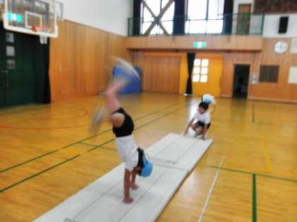 体操選手が行うような美しい技になるよう,何度も練習を重ねていました。