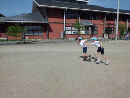 バトンパスを工夫してどうすればタイムが縮まるかを考えます。