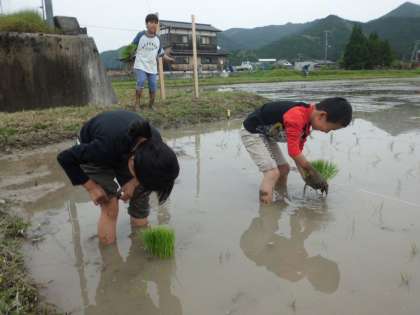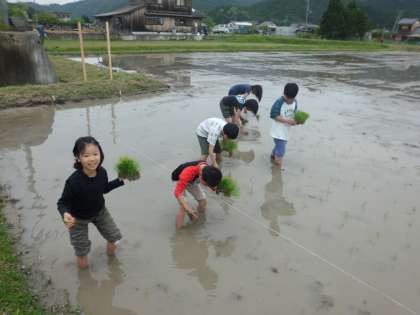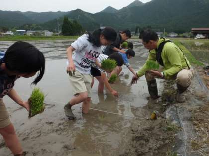 早速,地域の方のご協力のもと田植えを体験させてもらいました。