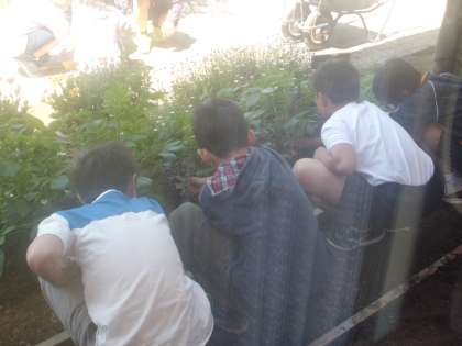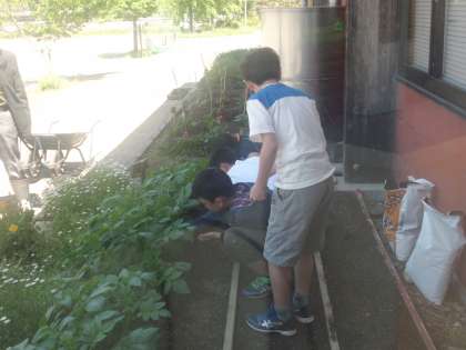 理科の学習でじゃがいもの苗に肥料をやり,土増しをしました。