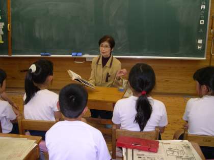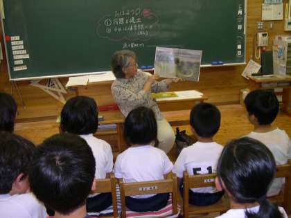 4年,5年,6年が読み語りをしていただきました。4年生は米津さんに京都の伝説「身がわり小太郎」を読んでいただきました。3年の時練習した丹波音頭と関わりのあるお話で,じっくりと聞くことができました。