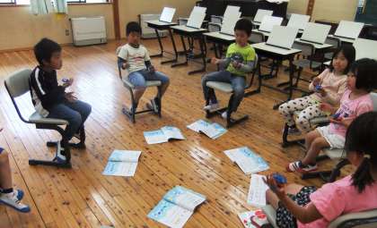音楽科ではカスタネットを使って拍を打つ学習をしました。
