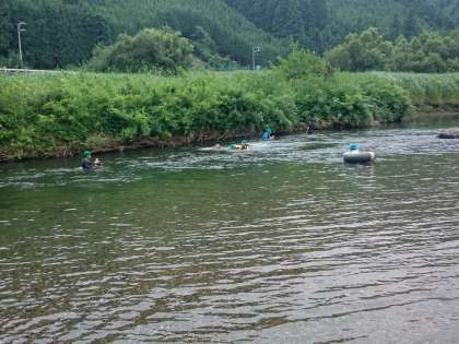 上桂川で遊びました。魚を取ったり、水をかけあったりして楽しみました。