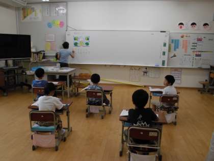 足し算のもとになる単元です。さし絵や拡大提示装置で,