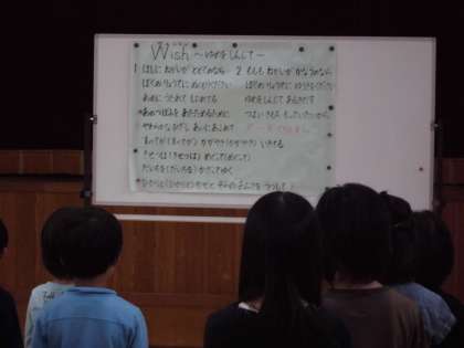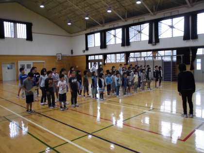 朝会で,今月の歌「Wish」の練習をしました。