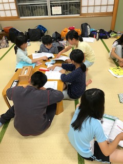 グループ行動の振り返りをし,また明日,協力して頑張ります。