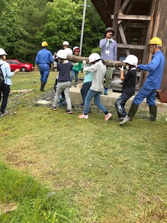 倒れた木をみんなで運びます。すごく重いです。