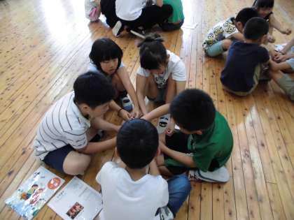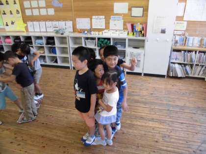 1時間目の学活では,「新聞乗り」や「嵐が来た」などで仲良く遊び,2時間目の音楽では日本の歌を楽しみました。