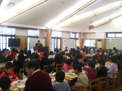 読書週間,給食時間みんなで過ごすランチルームで教職員が順番に「読み聞かせ」を行います。外は午前中からず〜と雪・・・ランチルームはとってもとっても暖かいです。