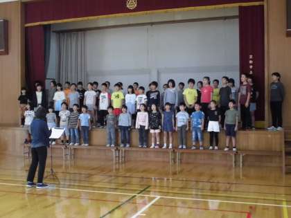 お昼の大杉っ子タイムの時間に,今週の金曜日に行われる音楽祭の練習をしました。歌はもちろんですが,入場から並び方,退場の仕方を練習しました。