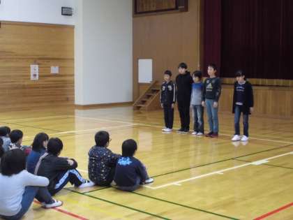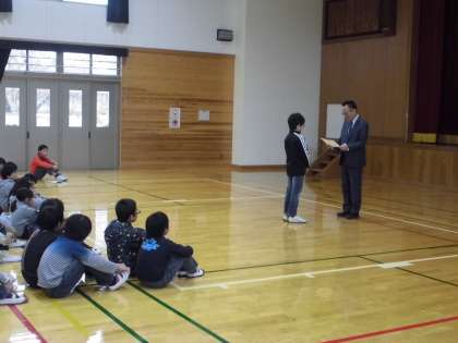 合唱の後,後期の委員会の紹介がありました。そのあと,作品展で優秀な成績をおさめた児童に,校長先生から表彰状が渡されました。