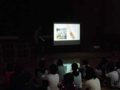 本日の朝会では,今月の人権の取組について,映像をまじえて話がありました。今月のテーマは「がいこくについて かんがえてみよう」です。