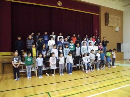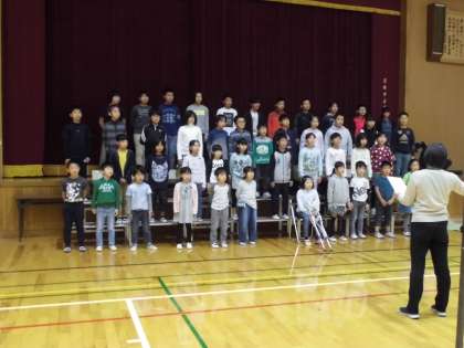 朝会の後半は,学習発表会の最後の全員合唱の練習をしました。