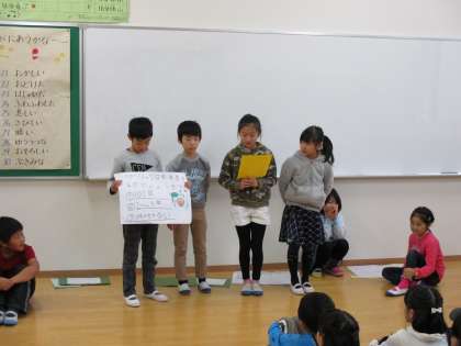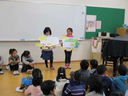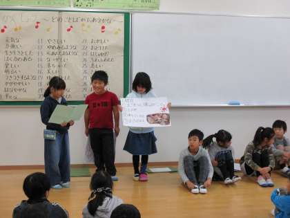 生活科で,調べて分かったことを発表しました。ずいぶん前から準備をしていて,みんなに発表できるこの日を楽しみに待っていた2年生。発表後も,たくさん感想を言ってもらえてとても嬉しそうでした。