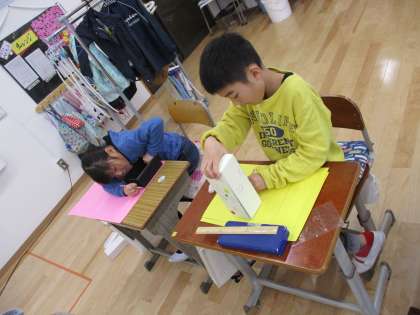 算数の「はこの形」では,用意した箱とその面を写し取りました。これから,はこの形をしらべて,はこを作っていく予定です。