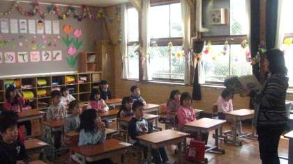 担任の山本先生が入ってきた一人ひとりに「おはようございます!」