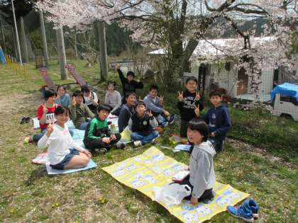 よく晴れた中で桜を見ながら,美味しいお弁当を食べました。