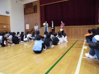 今日から開講した放課後まなび教室に参加しました。自己紹介をした後,スタッフの先生方から約束を聞き,ブロックや塗り絵などをして遊びました。その後,全校で開講式を行いました。