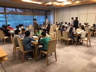 夕食後の班会議の様子です。今日一日の振り返りをしています。