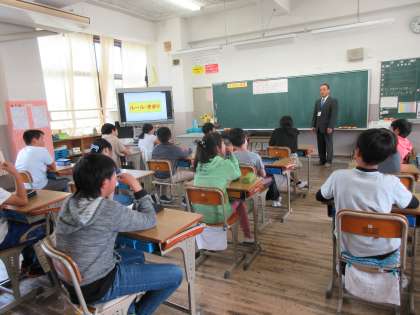 非行防止教室では,京都府右京警察署スクールサポーターの多田さんにお越しいただき,色々な犯罪や,いじめ,携帯電話のトラブルなどについてお話しいただきました。
