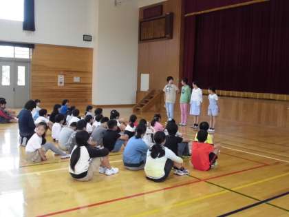 今日の朝会では,各委員会のメンバーの紹介と活動目標,活動計画の発表がありました。
