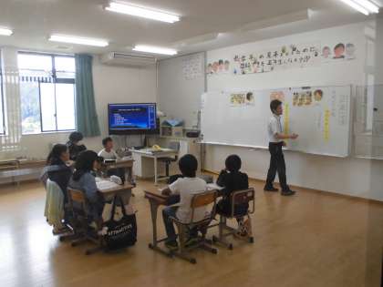 算数と道徳の授業を見ていただきました。算数はこれまで学習してきたことをもとにして小数÷小数の計算の仕方を考えました。道徳では、子ども達の身近な話題に沿った話を聞いて、「正義の実現」をするためにはどうしたらよいかを話し合いました。難しいい話題であったと思いますが、しっかり考えて自分の意見を話していました。