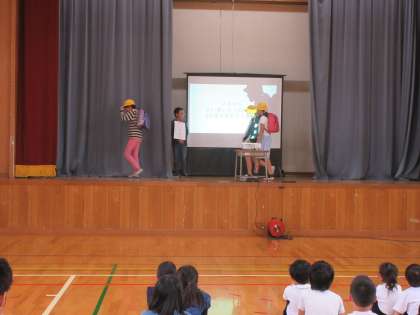 金曜日の朝会では,「あいさつ」について6年生が寸劇をしました。寸劇をもとに,全校でどんなあいさつをするのがいいかを考えました。
