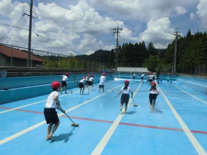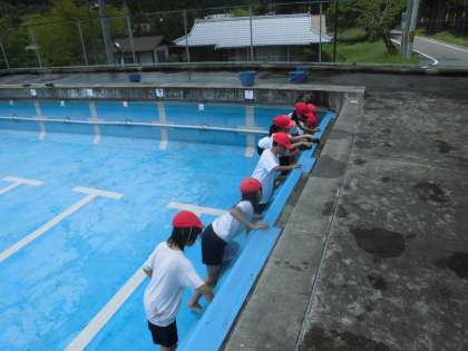 3・4時間目に,4年生と合同でプール清掃をしました。ブラシを持って汚れを一生懸命こすりました。きれいになって気持ちがいいね!