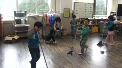 1年生も頑張ってお掃除を開始しています。