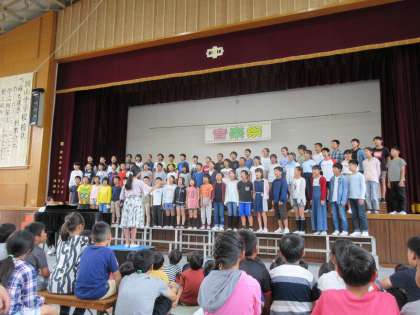 緑の都音楽祭が周山中学校でありました。5,6年生の「この星に生まれて」の合唱では,各学校で練習してきた成果を発揮し,とてもきれいなハーモニーで歌うことができました。