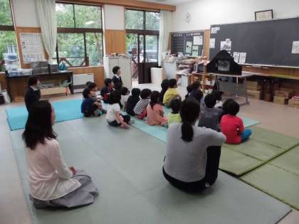 放課後に1年生は「放課後まなび教室」に行きました。紙芝居や絵本の読み聞かせをしてただきました。みんな真剣に聞き入っていました。