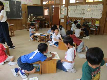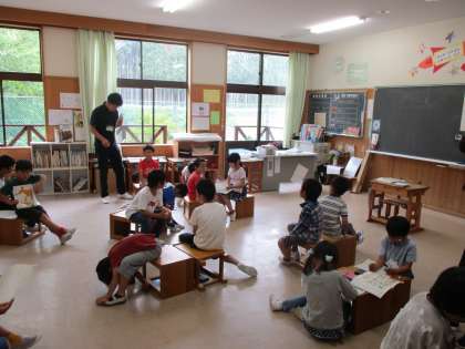 迷子のアナウンスをするためにどんな特徴を言えば良いか考えたり,ユニークな名前を考えたりと,違う学校同士の2人組で考えました。