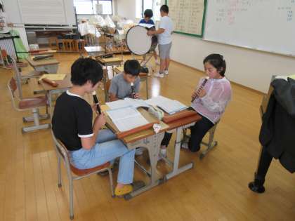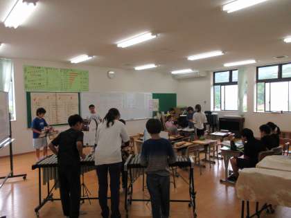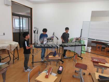 音楽の学習では,楽器の重なり合うひびきを味わいながら合奏できるように,「パートの役割」を考える学習をしました。