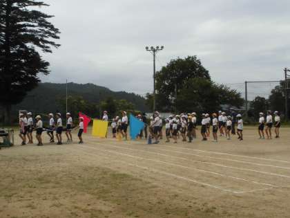 運動会予行練習の2回目です。3年生は,開会式で運動会のスローガンを発表します。大きな声でしっかり発表できました。