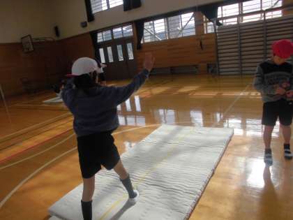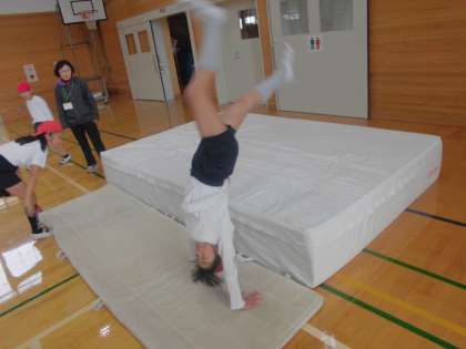今日は側方倒立回転(そくてん)にチャレンジしました。
