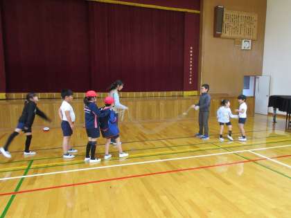 色別なわとび大会に向けて練習に取り組んでいます。低学年が跳べるように優しく背中を押したり,声をかけたりと6年生らしい姿が光っています。