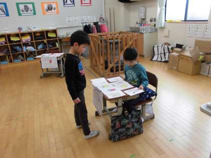 国語の学習でおみせやさんごっこをしました。一人一人がお店を開き商品を売ったり買ったりする学習です。「いらっしゃいませ。」「○○をください。」など上手に話しながら楽しんでいました。