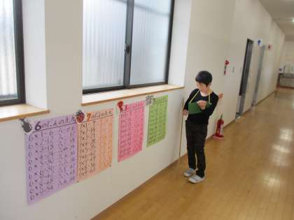三時間目に教室や廊下にあるものの長さを予想してはかりました。
