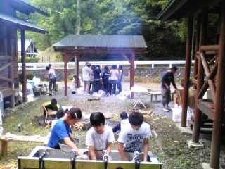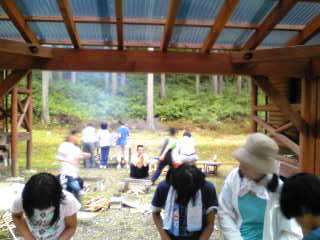 夕ご飯の用意。 雨にもうたれずに順調。 みんな元気にカレー作り!