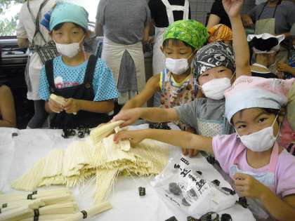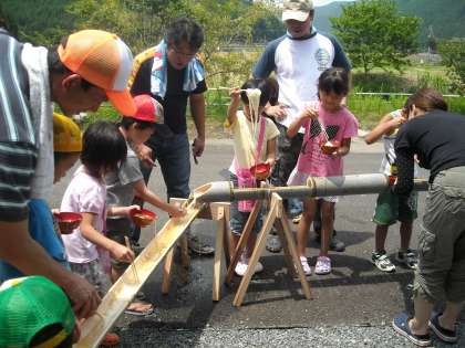 そして,流しそうめんをしました。みんな上手にすくっていましたね。