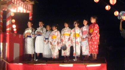 15日の弓削祭りでは本校3年生が「丹波音頭」を披露してくれました。